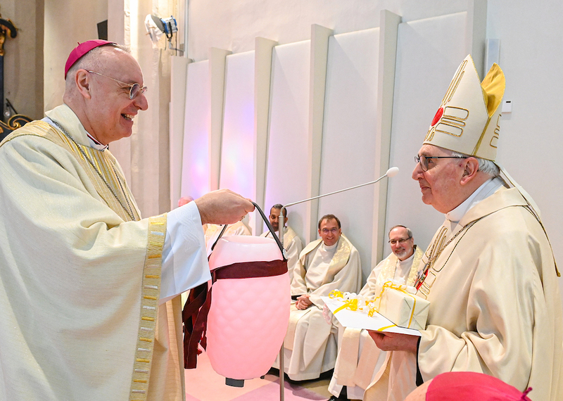 Bischof Dr. Zsifkovics zählte die Meilensteine im Leben des Jubilars auf und wies auf das Kursbuch seiner Zugfahrt hin - Es war und ist bis heute das Evangelium von Jesus Christus. Das ist die erste und wichtigste Aufgabe und der Dienst eines jeden Bischofs und Hirten. Jesus Christus und sein Evangelium sollen den Bischof von Kopf bis Fuß, also ganz durchdringen. Er soll immer mehr ein „alter“ Christus, ein „zweiter“ Christus sein und werden. „Der Verkündigung des Evangeliums hast Du Deine Talente und Kräfte geschenkt und Du warst bemüht, den Menschen unseres Landes das Evangelium nicht als Drohbotschaft, sondern als ‘Frohbotschaft’ weiterzutragen.“