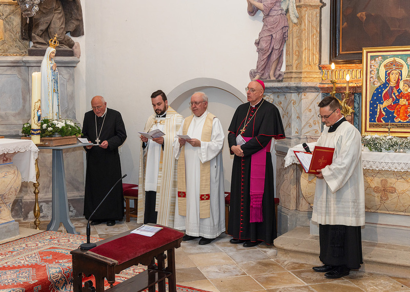 Am Samstag, den 17. Juni, wurde dem neu geweihten P. Aaron ein feierlicher Empfang im Öden Kloster in Baumgarten bereitet. Im Namen der Pfarre wurde P. Aaron von Ortspfarrer Mag. Johann Karall, Bürgermeister Kurt Fischer, Pfarrgemeinderatskurator Stefan Luxl, unserem Bischof Dr. Ägidius Zsifkovics und vom Abt des Klosters St. Lambrecht P. Benedikt Plank begrüßt. Die feierliche Andacht stand im Zeichen des Gebets für geistliche Berufungen. Mit dem eucharistischen Segen und dem Marienhymnus „Ich preise dich, o Maria“ endete diese geistliche Stunde. Vor dem Kloster gab es noch Gelegenheit zur Begegnung für alle Anwesenden, bei Gebäck und Getränken.
