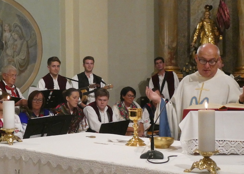 Die erste und die zweite Woche im September stellen unsere himmlische Mutter in den Mittelpunkt unserer Aufmerksamkeit. Nach den beiden Festtagen Mariä Geburt und Mariä Namen lud die Pfarre Dürnbach am 13. September die Gläubigen aus der Umgebung zur Fatimafeier in das Marienheiligtum der Muttergottes von Dürnbach ein. Zur Messe versammelten sich die Burgenlandkroaten aus der Umgebung und aus dem ungarischen Teil des Burgenlandes. Hauptzelebrant der Messfeier war Pfarrmoderator Zdravko Gašparić und als Konzelebranten versammelten sich um ihn Priester wie Pfarrer Josip Banfić, Pfarrer Stanislaw Swieca und Ortspfarrer Branko Kornfeind. Die hl. Messe wurde von der örtlichen Tamburizzagruppe mit Pfarrer Kornfeind musikalisch umrahmt. Trachten, Tamburizza und kroatische Kirchenlieder gaben dieser Messfeier einen besonderen Impuls. Sollte jemand nicht genügend Impulse bekommen haben, so hat die Predigt des Pfarrmoderators viele Menschen berührt. Das Hauptthema war unter anderem die Eintracht. Als hätte man im Voraus gewußt, dass bei dieser festlichen Feier Menschen aus verschiedenen Orten und Ländern anwesend sein würden, als hätte man gewußt, dass so viele Menschen zusammenkommen würden. Wie Pfarrmoderator Gašparić in der Predigt betonte, ist uns gemeinsam, dass wir wie unsere Vorfahren Verehrer der Heiligen Jungfrau Maria sind. Nach der bewegenden Predigt und der feierlichen Messe begaben wir uns gemeinsam singend zur Lichterprozession. Auf dem Weg zum Pfarrhof in Dürnbach war im Licht zahlreicher Kerzen, umgeben von einem wunderschönen, schlichten Blumenkranz, die Statue der Wandermuttergottes unter uns. Dem lieben Gott müssen wir für das Wetter dankbar sein, dass es uns trotz einiger Regentropfen und Blitzen am dunklen Himmel möglich war, Marienlieder zu Ehren der Mutter Gottes zu singen.