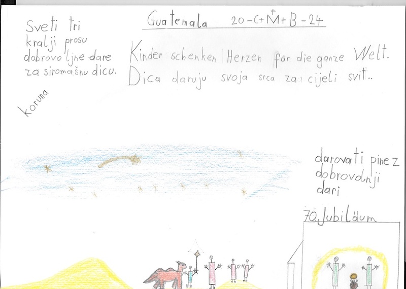 Im Religionsunterricht etwa gestalteten Schüler informative Plakate oder Zeichnungen und setzten sich mit der Situation in Guatemala auseinander. Interessant war auch die Arbeit mit dem neuen zweisprachigen Religionslehrbuch für die erste Klasse „Glauben entdecken und darüber nachdenken“, in dem dieses Thema ausführlich behandelt wird. Die Kinder, gekleidet als Heilige Drei Könige, werden mit der Aufschrift „Wir tun Gutes“ dargestellt. Darunter haben die Schüler eine Anleitung mit dem Hinweis: „Menschen, die sich wie Jesus verhalten …“.