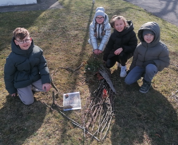 Anschließend ging es an die praktische Arbeit in der Natur. Schülerinnen und Schüler sammelten fleißig Material und stellten anschließend diverse Kleinigkeiten und Schmuck her. Dies waren zum Beispiel Blumen, Äste und Blätter, Kastanien und Steine. Mit diesen Dingen gestalteten sie die einzelnen Kreuzwegstationen.