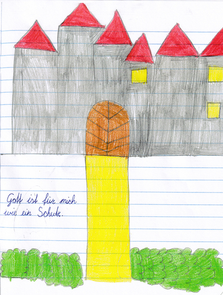 Im letzten Schritt wird die Symbolkarte in das Heft übertragen. Die Kinder sollen die Karte so tauschen, dass sie ihnen symbolisch entsprechen. Dabei fügen sie einen Satz über ihr Gottesbild hinzu, das zuvor im Präsentationsgespräch erarbeitet wurde.