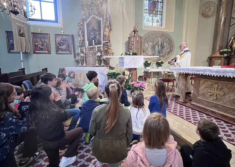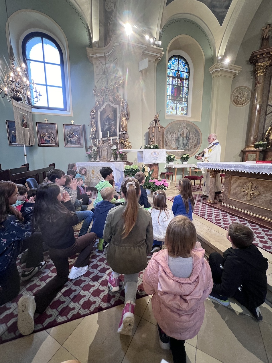 Freitag, den 17. Mai beteten wir mit Pfarrer Branko die Maiandacht. Die Kinder waren sehr ergriffen und fröhlich, als wir sangen und beteten. Nach dem Gespräch über das Evangelium („Tut, was Jesus sagt“), lasen die Kinder die Fürbitten. Der Pfarrer segnete die Rosenkränze und wir beteten ein Gesätzchen. Nach dem Segen sangen wir laut und tanzten das „Maria, wir dich loben“.