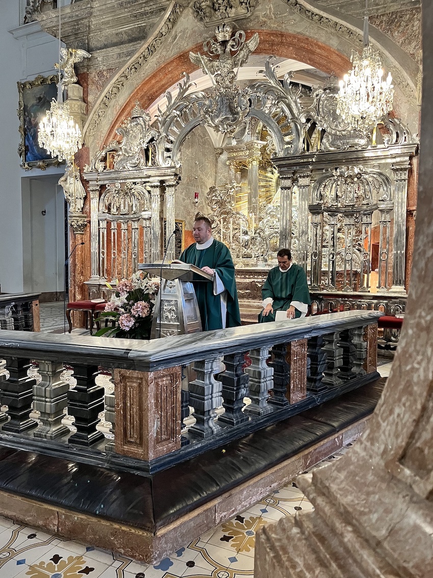Der Sonntagmorgen begann um sieben Uhr mit der hl. Messe für die Verstorbenen unter der Leitung von Pfarrer Marko Zadravec. Diese hl. Messen in der Früh war besonders schön. Die Stille gibt uns die Möglichkeit, die Ruhe des Ortes, die Ruhe der Basilika, wirklich zu genießen. Die Frühmesse war für alle Anwesenden ein besonderes Gefühl. Die Wallfahrtsorte sind oft sehr voll, aber in den Morgenstunden können sich die Menschen dem Gebet widmen und in Ruhe mit Gott sprechen. Der Kantor dieser Messfeier war Martin Herits aus Schandorf.