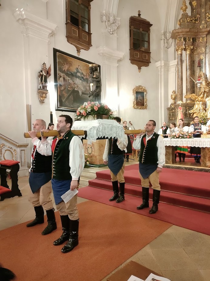Zu Beginn begrüßte der Hausherr, Pater Stefan Vukits OMV, alle Anwesenden und sagte auch, dass es ihm leidtue, dass er aufgrund des schlechten Wetters keine einzige Gruppe von Fußwallfahrern begrüßen konnte, aber wir müssen es nehmen, wie es ist, denn gegen das Wetter können wir nichts machen. Zu Beginn begrüßte die Leiterin der kroatischen Wallfahrten, Dr. Kristina Glavanics, alle Anwesenden und insbesondere den Jubilar, P. Stefan Vukits, der heuer sein 25-jähriges Professjubiläum feiert. Im Namen aller, die bei der hl. Messe waren, und im Namen aller LeserInnen wünschen wir dem Jubilar Gottes Segen, Gesundheit und alles Gute. Danke für alles, was er bisher getan hat, für die Kirche, für ihre Gläubigen, und möge der liebe Gott ihn beschützen und die hl. Jungfrau Maria Fürsprecherin auf seinem Weg sein. Der Jubilar Pater Stefan Vukits erhielt zusammen mit Blumen ein Lied als Geschenk. Das Lied mit dem ihn die Tamburizzaspieler und SängerInnen stellvertretend für uns alle überraschten war: „Für jedes gute Wort“.