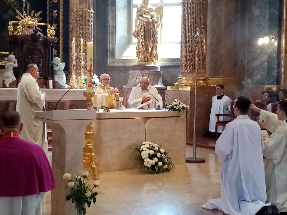 Die Kathedrale von Györ war übervoll. Pilger kamen aus Ungarn, Österreich und der Slowakei. Der Hauptzelebrant der Messe, Pfarrer Branko, erwähnte in seiner Predigt, dass die Heilige Jungfrau Maria blutige Tränen vergossen habe und dass wir deshalb jedes Jahr am ersten Sonntag nach Györ kommen. Doch so wie es scheint, hätte sie auch heute noch Grund zum Weinen, da viel Trauriges in unserer heutigen Welt geschieht. Die Musiker aus Und und Organist Herr Maász begeisterten an diesem Maisonntag alle Gläubigen mit wunderschönen Liedern, ebenso wie Pfarrer Branko, der seine Predigt mit einem Lied beendete, das er selbst spielte.