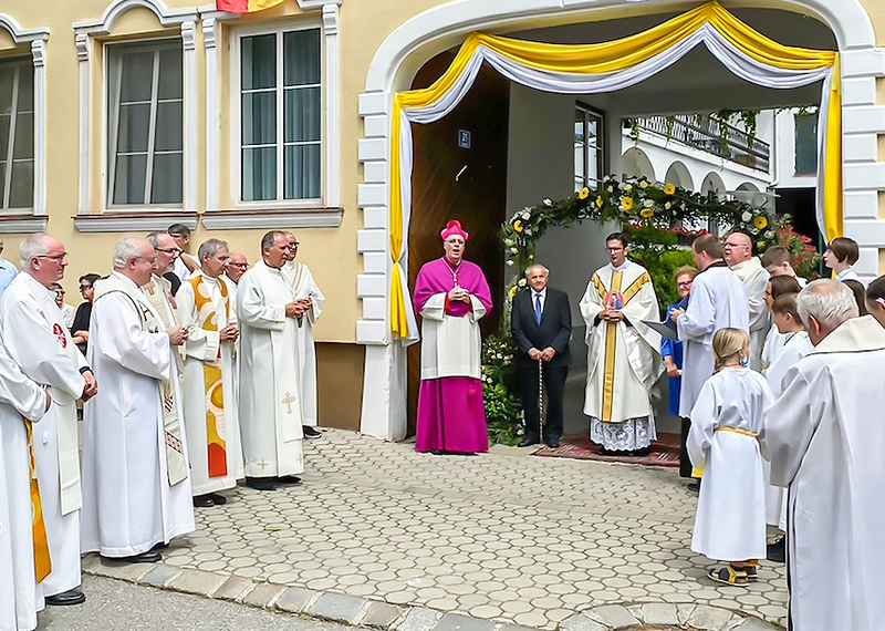 Am Sonntag, 4. Juli 2021 fand der Höhepunkt der Feierlichkeiten in Jois mit der Primizmesse statt. Der Primiziant wartete im Haus der Familie Freitag auf die Festgäste – an der Spitze Diözesanbischof Dr. Ägidius J. Zsifkovics, zahlreiche Priester, Ehrengäste und Gläubige. Den Haussegen erteilte dem Primizianten Frau Freitag auf ganz berührende Weise. Danach wurde der Neupriester Ivan in gemeinsamer Prozession in die Pfarrkirche geleitet, wo er seine erste hl. Messe feierte. Von Herzen kamen die Grußworte des Ratsvikar einer Pfarre des Seelsorgeraumes sowie des Bürgermeisters von Jois, ebenso aber auch von Pfarrer Dechant Karl Opelka. Doch es gab noch einen Grund für Freude und Dankbarkeit an diesem Tag, war doch unter den Feiernden auch ein Priesterjubilar, der vor 60 Jahren in Jois Primiz feierte: Dr. Franz Hillinger. So richteten sowohl Pfarrer als auch Diözesanbischof Dr. Zsifkovics Glück- und Segenswünsche an ihn.