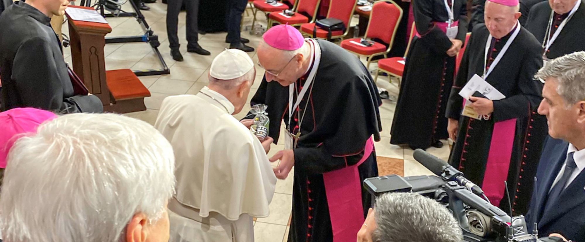Die katholischen Bischöfe Ungarns rief der Papst eindringlich zu Öffnung und Dialog auf sowie dazu eine prophetische Stimme zu sein. Die Kirche muss Vorbild für die gesamte ungarische Gesellschaft sein. Angesichts kultureller, ethnischer, politischer und religiöser Unterschiede gebe es zwei Haltungen: "Entweder verschließen wir uns in einer starren Verteidigung unserer sogenannten Identität, oder wir öffnen uns für die Begegnung mit dem Anderen und kultivieren gemeinsam den Traum einer geschwisterlichen Gesellschaft."