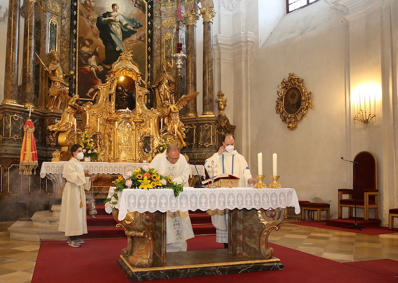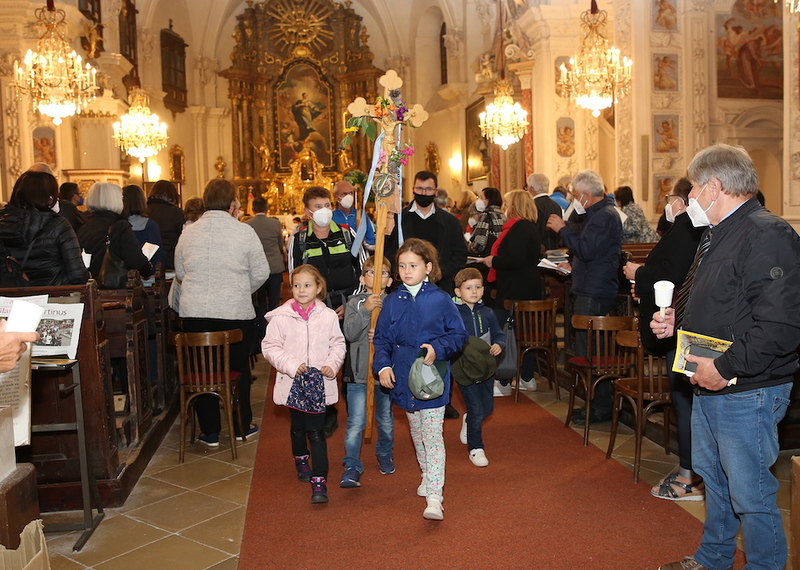 In der Predigt zeigte MMag. Jahns auf die Muttergottes, deren Leben uns lehrt, was es bedeutet heilig zu sein. Maria stand unter dem Kreuz Jesu, jene aber, die die Wunder Jesu gesehen hatten, seine Jünger, haben ihn verlassen. Es ist nämlich Zeichen wahrer Liebe, dass sie stärker ist als die Angst und sich in der Not erweist. MMag. Jahns rief die Gläubigen auf, immer mit Jesus in enger Verbindung zu bleiben, nicht nur in schweren Zeiten. Er sprach auch über die Herausforderung, sein Kreuz auf sich zu nehmen, und verwies auf den Sinn des Leidens für andere und für die Welt … Aber in der Not und unter dem Kreuz sind wir nicht allein. Jesus gab und Maria am Kreuz zur Mutter. „Wir haben eine Mutter im Himmel, die uns liebt und tröstet und bei ihrem Sohn Fürsprache für uns einlegt. Seien wir dankbar, dass wir sie haben. Empfehlen wir ihr alle unsere Sorgen, besonders die Kranken und Betrübten an“, betonte MMag. Jahns und lud ein, geduldig sein Kreuz zu tragen.