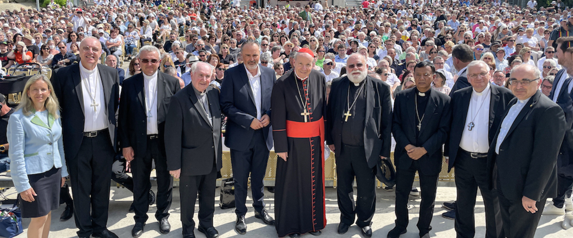 Der für den Text verantwortliche Passionspielpfarrer Richard Geier begrüßte den apostolischen Nuntius in Österreich, Erzbischof Pedro Lopez Quintana, die Diözesanbischöfe Kardinal Christoph Schönborn (Wien), Ägidius Zsifkovics (Eisenstadt), Wilhelm Krautwaschl (Graz) und Werner Freistetter (Militärdiözese), aus dem Ausland Andras Veres (Györ), Frantisek Rabek (Militärbischof der Slowakei), den mit Missio-Nationaldirektor P. Karl Wallner gekommenen Erzbischof Sebastian Shaw aus Lahore (Pakistan), aus Eisenstadt Altbischof Paul Iby und Generalvikar Michael Wüger, aus Wien Schottenstift-Alt-Abt Johannes Jung.