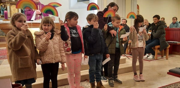Am 14. März haben sie zusammen mit ihrer Religionslehrerin Nicole Horvatits die Schülermesse mitgestaltet. Die Kinder erklärte den Gläubigen die Bedeutung des Regenbogens – er ist ein Zeichen der Liebe Gottes zu uns.