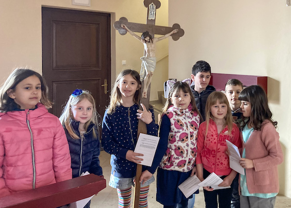 Im Religionsunterricht besuchten die Volksschulkinder unsere Pfarrkirche. Jede Klasse betete eigens den Kreuzweg und begleiteten so mit Liedern und Gebeten Jesu auf seinem schweren Weg.