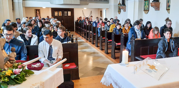 3 Burschen von der Gemeinschaft Cenacolo waren zu Gast und erzählten von ihrem Leben mit und ohne Gott. Es waren auch Firmlinge vom Seelsorgeraum zur Heiligen Elisabeth von Thüringen anwesend, die bei der anschließenden Prozession die Statue der Wandermuttergottes trugen. Zum Abschluss gab es noch eine Agape im Kirchenhof.
