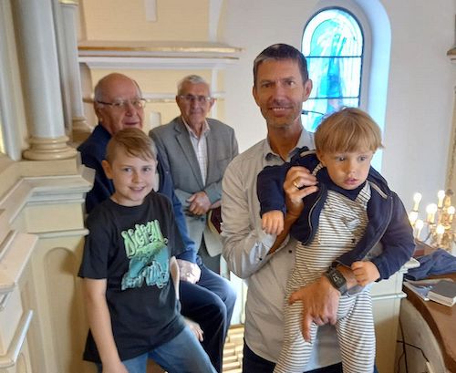 Am Sonntag, den 21. Mai 2023 gab es in der Pfarrkirche Neuberg ein Zusammentreffen aller vier Kantoren, die in der Pfarre im Einsatz sind. Auf dem Bild im Hintergrund Robert Novakovits und Otto Ivancsics, die den allergrößten Teil der Messen musikalisch gestalten. Vorne Morice Krenn, der jüngste Organist, und Arnold Knor, der auch den Chor und die Tamburizza leitet, mit Sohn Elias, der vielleicht einmal die 5. Genera.on Kantor sein wird.