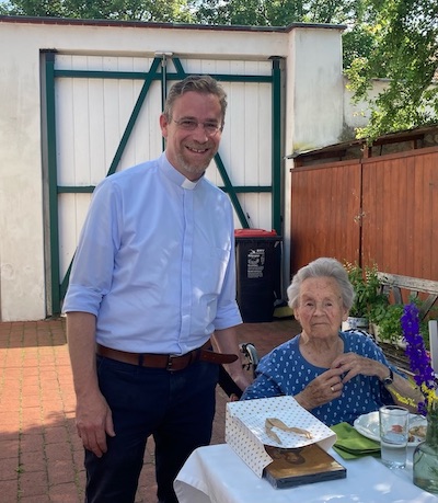 Nach dem Besuch der hl. Messe feierte die Jubilarin mit ihrer Familie. Im Namen der Pfarrgemeinde gratulierte Pfarrmoderator MMag. Stefan L. Jahns und wünschte der Jubilarin den reichen Segen Gottes und Mariens, Gesundheit, Freude, Glück und Frieden im neuen Jahrhundert ihres Lebens.
