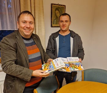 Der Stinatzer Pfarrer Marko Zadravec hatte den Wunsch nach einigen kroatischen Büchern. Nun konnten Patrick Hafner und Vizebürgermeister Thomas Grandits diese Bücher besorgen und vorbeibringen. Die Kosten für diese Bücher hat Thomas Grandits von seinem Gehalt als Vizebürgermeister übernommen. Pfarrer Marko hat sich sehr über die Bücher und den Besuch gefreut. Der gute Kontakt und die Unterstützung des Pfarrers sei ihm sehr wichtig, so Vizebürgermeister Thomas Grandits.