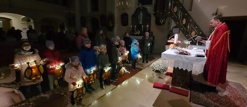 Die Kinder des Kindergartens und der Schule von Kroatisch Minihof gedachten voll Freude und Glück ihres Landes- und Diözesanpatrons. In einem kleinen Programm mit Liedern, Gedichten und einer Geschichte stellten sie die Legende des hl. Martin dar. Mit dem Segen des örtlichen Pfarrers Predrag Ivandić machten sie sich mit leuchtenden Laternen auf den Weg.“