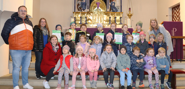 Gemeinsam mit ihren Pädagoginnen, Pfarrer David Grandits und Eltern, Großeltern und Freunden beteten die Kinder des Kindergartens Güttenbach einen Kreuzweg in der Pfarrkirche. Die Pädagoginnen hatten mit den Kindern Lieder und fünf Stationen vorbereitet, die sie gemeinsam mit ihren Eltern vortrugen. Zum Abschluss segnete Pfarrer David Grandits alle Anwesenden und bekam von den Kindergartenkindern noch ein Osternest überreicht.
