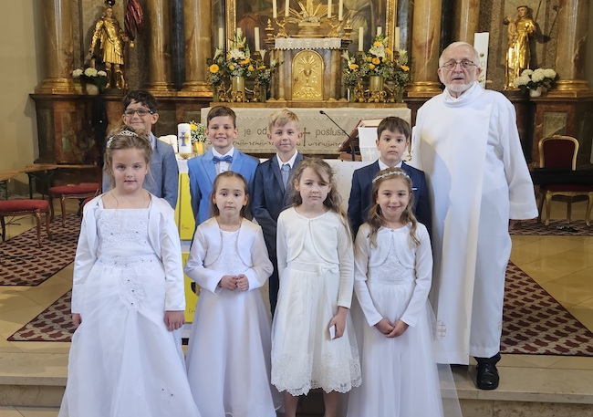 Am Sonntag, den 5. Mai 2024, empfingen Dominik, Matteo, Paul, Anton, Theresa, Emma, Lena und Lorena - Kinder aus Schachendorf, Schandorf und Dürnbach - das Sakrament der hl. Erstkommunion von Pfarrer Mag. Branko Kornfeind in der Wallfahrtskirche in Dürnbach.