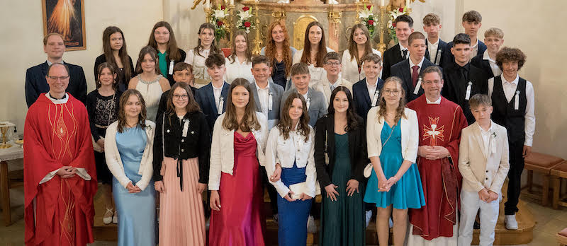 Die Gruppe „Poljanci“ und der Kirchenchor mit Christian Artner umrahmten musikalisch die Messfeier sehr schön. P. Stefan Vukits OMV fand in der Predigt die richtigen Worte für die Jugend: Er betonte, dass es gut wäre, wenn die Jugendlichen sich auch nach der Firmung bemühen würden, Zeit für den Glauben zu finden, so wie sie es für ihre Mobiltelefone und Computer tun. Am Ende der hl. Messe erhielten die Firmlinge vom Pfarrer als Geschenk eine schöne Kette mit einem Kreuz und eine Bestätigung der Firmung.