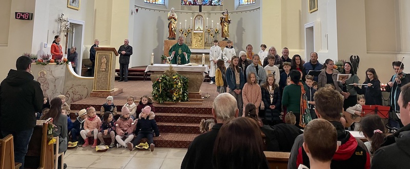 In den engagiert vorgetragenen Fürbitten baten die Kinder den lieben Gott, schützend seine Hände über unsere Umwelt, die Opfer von Flutkatastrophen, aber auch über ihre Eltern und Freunde zu halten. Denn auch sie spüren: Er ist es, der unsere Welt in seiner Hand hält.