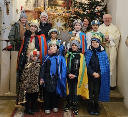 Pfarrer Johann Karall und die Heiligen Drei Könige in der Kirche in Draßburg.