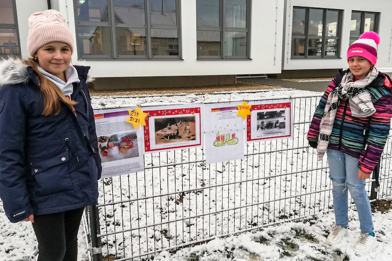 Jeden Tag wollen wir am Zaun vor der Schule eine von einem Kind gestaltete Tafel aufhängen um die Menschen auf Weihnachten einzustimmen. Zusätzlich veröffentlichen wir noch eine zweite Tafel mit historischen Fotos aus Neuberg. Gerade in dieser Zeit, wo es früh dunkel wird, erinnert man sich gerne auch an längst vergangene Tage und die Kindheit zurück. Wir hoffen, dass wir damit wenigstens einigen Menschen eine kleine Freude machen können.