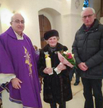 Im Namen der Pfarre bedanken sich Pfarrer Mmag. Franz Borenitsch und Mag. Hannes Reibach am Samstag, den 12. März im Rahmen der Vorabendmesse bei der Jubilarin für ihre großzügige Unterstützung der Kirche und Pfarre. Wir wünschen alles Gute, Gesundheit und Gottes Segen.
