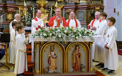 Zu Laurentius, 10. August feierte die Pfarre Trausdorf ihren Kirtag. Obwohl ein Arbeitstag - Mittwoch – vormittags um 10.00 Uhr – war die Kirche bis auf den letzten Platz gefüllt, da sich an diesem Tag die TrausdorferInnen frei nehmen. Festprediger war P. Stefan Vukits OMV, die hl. Messe haben mitgestaltet die Tamburica „Lovrenci“, welche ihr 40jähriges Jubiläum feiern.