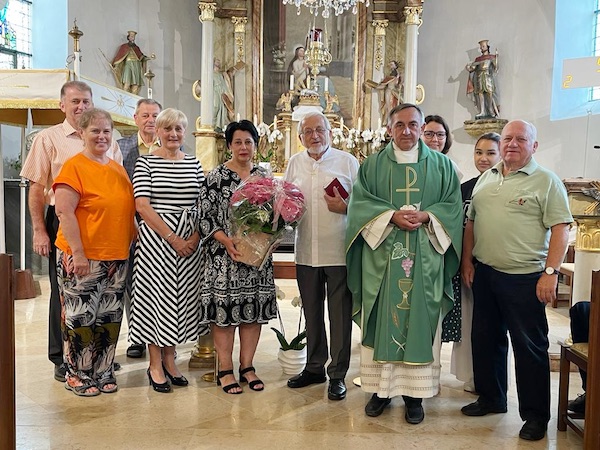 Petak, 30. junija svečevala je Anastazija Mager svoj 50. rodjendan. Veliki broj rodbine i prijateljev sastao se je u nje domaćem vrtu, da slavi s njom ov svetačni dan. Pokidob je ona 10 ljet dugo kinčila s velikim entuzijasmom našu crikvu, čestitao i zahvalio se je njoj naš farnik mag. Branko Kornfeind nedilju pri sv. maši u svoje i u ime svih vjernikov naše fare za nje velikodušni trud. Čestitkam se je priključio i farski savjet i joj kot znak zahvalnosti predao - kot se po sebi razumi - jednu krasnu kiticu. Obećala nam je, da će i u budućnosti podupirati novo utemeljeni ženski tim pri kinčenju naše crikve.