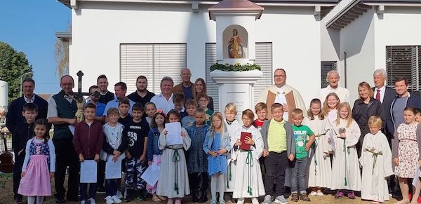Pred blagoslavljanjem novoga pilja su u mjesnoj crikvi održali žetvenu zahvalnicu. Osnovnoškolska dica su doprimili žetvene dare pred oltar i su jedan dio svete maše oblikovali s jačkami i teksti. Po svetoj maši su prošli k novomu pilju, ki stoji na druge strane crikve pred školom. Mjesnin farnik mag. David Grandić je blagoslovio pilj Majke Božje, a školska dica su jačila Marijanske jačke. Prilikom blagoslavljanja su dica osnovne škole predstavila za ovu priliku novo komponiranu hrvatsku jačku, ka se zove „Novogorska mati“. Komponirao je jačku Novogorac Michael Roselieb, a tekst je napisao Karl Knor.