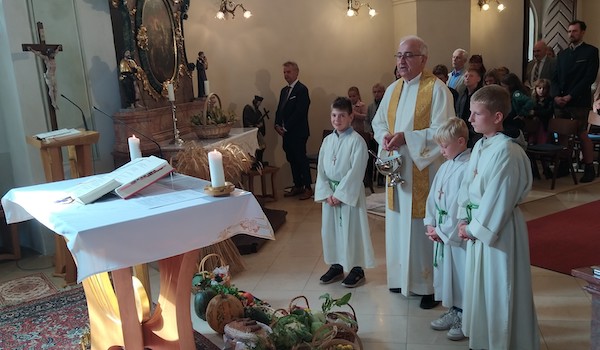 Pri svetoj maši je farnik blagoslovio dare iz vrta i polja. Na orgula je bio kantor mag. Martin Miletić. Po svetoj maši su nazočni dostali pernice. Farnik i kotrigi farskoga savjeta su pozvali po sv. maši na agapu pred crikvom. Korunu i pernice su načinile vikarica farskoga savjeta Martina Kalinka i farska savjetnica Sigrid Laczko ter pomagačice. Hvala svim!