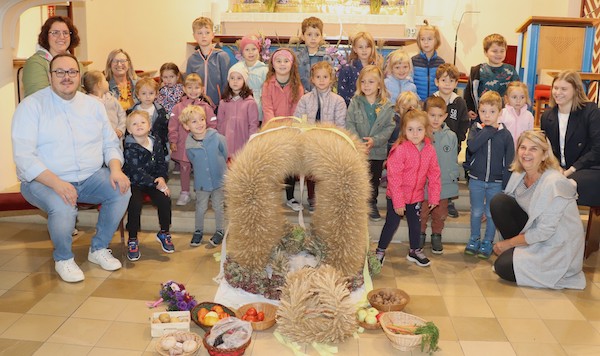 Pri jednoj večernici su imali žetvenu zahvalnicu dica iz čuvarnice u Pinkovcu skupa s roditelji, odgojiteljicami i farnikom Davidom Grandićem. Dica su donesla malu žetvenu korunu i zahvalili su se Bogu za sve dobro što su dobila. Po skupnoj molitvi mali su iskoristili priliku, da zapjevaju farniku Grandiću jednu jačku za rodjendan. Po žetvenoj zahvalnici i južini su svi išli zajzad u čuvarnicu.