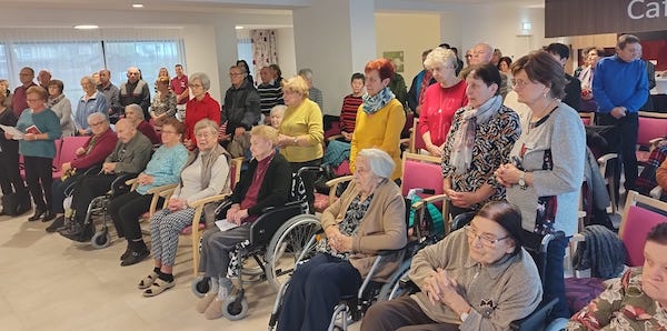 U Čembi su u staračkom domu organizirali trojezičnu svetu mašu, da se ljudi doma i svi, ki onde djelaju, spomenu onih, ki već nisu s njimi, ki su se preselili u vječni život. Trojezičnu svetu mašu je služio farnik iz Narde Tamás Köbli u koncelebraciji s domaćim farnikom Brankom Kornfeindom. Na orgulja je svirao nardarski orguljaš Zoltan Pezenhoffer. Djelači ove institucije su priredili ganutljivo spominjanje na tri jeziki i lipo su se spomenuli ljudi, ki su bili nekada stanovniki ove nove institucije. Za sve nas, ki živimo na ovom pograničnom području je jako važno, da se svi tri jeziki hasnuju. Svaka čast ustanovi, da gledaju uz svoj posao, ki nije lagak, i na trojezičnost. Sala, kade se svete maše svečuju, se je napunila s vjerniki iz Čembe, iz okolice i iz druge strane granice, iz Narde. Sviće, ke su bile nažgane na ov dan, gorile su za sve pokojne ovoga doma. Velika je stvar, kada se zna, da ljudi, ki su postali po aktivnom žitku nemoćni, dobenu pažnju, skrb od ljudi, ki su si zeli za zvanje ovo djelo, ča svaki dan od srca djelaju, a to ne samo u zdravstvenom smislu, nego im je važno, da stanovniki budu i mentalno u dobri ruka. Hvala!