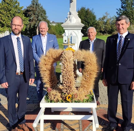 Ned., 22.09.2024. svečevali smo mi vjerniki Čembe našu ljetošnu zahvalnicu. U 09.15 uri sastali smo se pri gornjem križu, kade su dica pod peljanjem gospe Bibiane čitala zanimljive tekste. Potom je naš farnik mag. Branko Kornfeind blagoslovio krasno nakinčenu žetvenu korunu, ku su onda 4 seljaki nosili u prošeciji kroz selo u crikvu. Gospa Heidi je mjesto pred oltarom s različnim povrćem i sadjem jako lipo nakinčila.