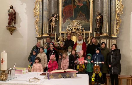 Glas različnih instrumentov, naše pjesmice i jačke su polipšali ovo spominanje. Zatim smo s veseljem u ruke zeli naše laterne i uz pratnju naših roditeljev i gostov smo se ganuli na put, da svitlo nosimo u škuru noć. Naš ophod smo završili u crikvi, kade nas je blagoslovio naš seoski farnik, fra Božidar Blažević. “Budi svitlost…” smo nujno jačili, a ovom porukom smo se ganuli najzad na školski dvor, kade je za svakoga bila priredjena mala agapa.