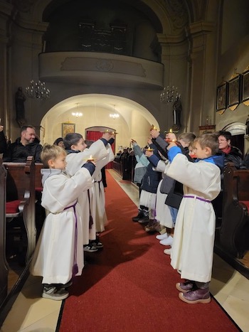 Vlč. Željko Odobašić je imao zornicu za trajštofsku dicu, ka su rado bila nazoči pri mašnom slavlju rano jutro.