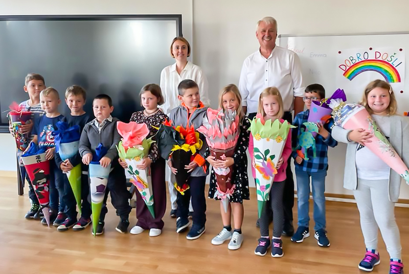 Po Božjoj službi na početku novoga školskoga ljeta su u školi primili dicu direktor osnovne škole Karl Knor i njihova učiteljica Rozvita Staudinger. Na koncu dana su se svi na spominak rado dali slikati.