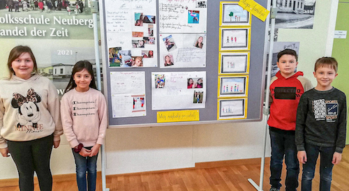 Tako se je na ov Dan materinskoga jezika posebno naglasila i istaknula vridnost jezika. To kaže i slika, na koj vidimo zainteresirane novogorske školare i školarice: Liza Tiefengraber, Sueli Jani-Pongracz, Feliks Schmidt, Paul Dergović.