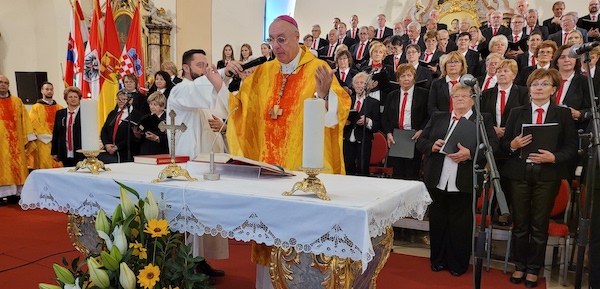 Svetu mašu u Malom Borištofu je oblikovao kantor Feri Fellinger a u Filežu zbor “Pax et Bonum” pod peljanjem pastoralnoga asistenta Ive Šeparovića uz “Graničare” i kantora Joška Domnanovića. Na koncu maše je predstavio orgule u cijelosti i lipoti restaurator mag. Zdenko Kušćer.