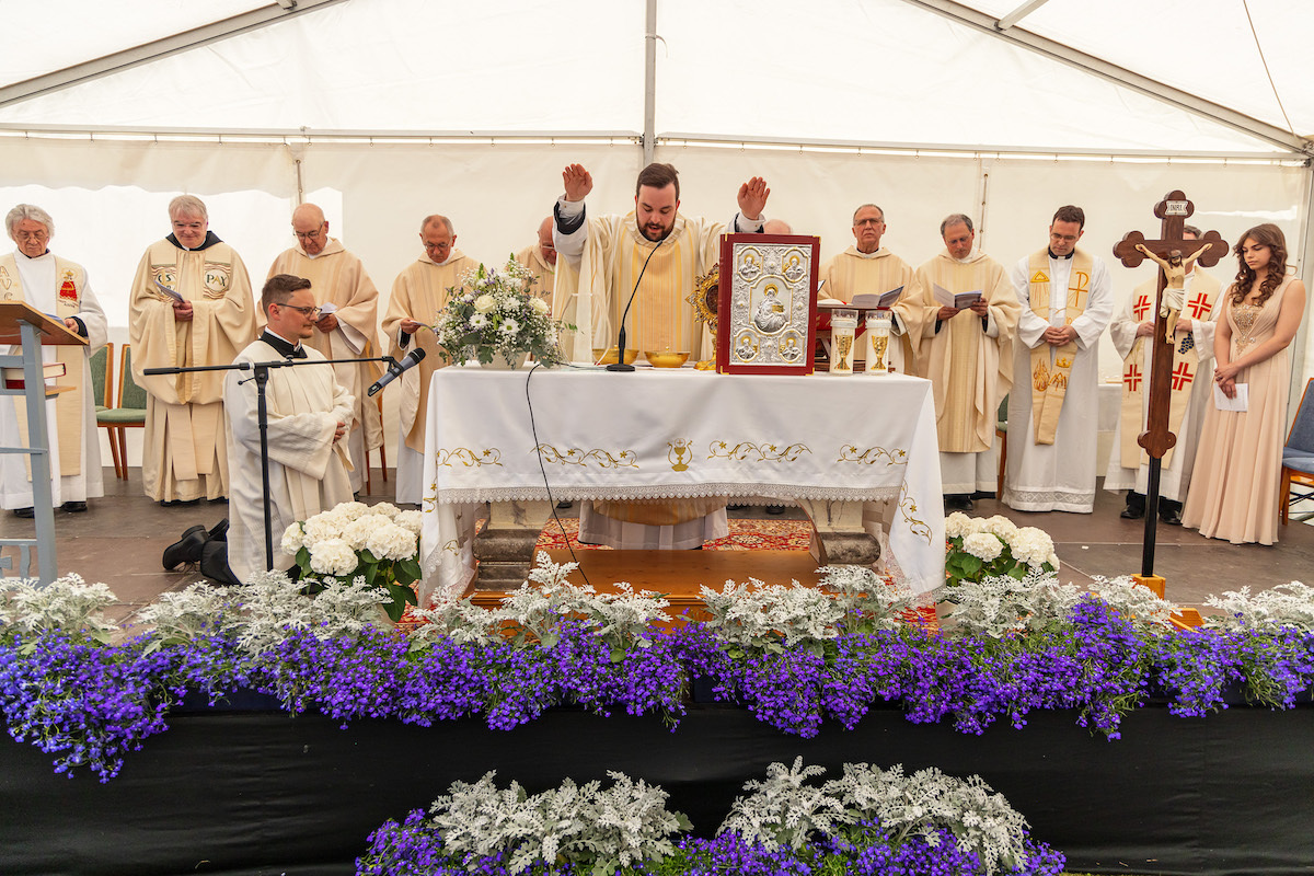 Svetačna mlada maša se je vršila u farskom vrtu pod šatorom. 11 duhovnikov i uz sudjelovanje oko 300 vjernikov je p. Aron prikazao svoju prvu svetačnu mašu, primiciju. Za svetačnoga prodikača si je pozvao biškupskoga vikara p. Karla Schauera, benediktinca iz St. Lambrechta.
