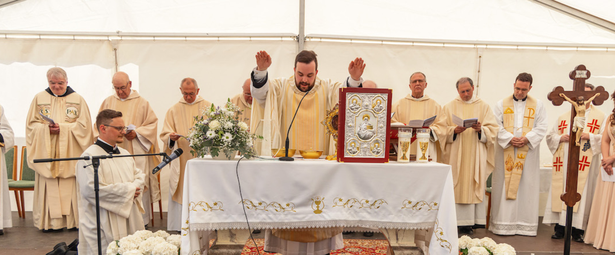 Nedilju, 11. junija je u kloštarskoj crikvi u St. Lambrechtu zaredjen za duhovnika p. Aron Laun, rodom iz Pajngrta. Krez polaganje ruk solnogradskoga pomoćnoga biškupa dr. Hansjörga Hofera i svih nazočnih duhovnikov je p. Aron primljen u prezbiterat Crikve. Pomoćni biškup je u svojoj prodiki pokazao na duhovnika, ki glasi Rič Božju svojim povjerenim i ki živi u smislu svetoga evandjelja. Duhovnik je za ljude ovde a ne za samoga sebe, tako, kako se je i Kristuš aldovao za narod Božji. Pod peljanjem evandjelja, iz regule svetoga Benedikta, si je novozaredjeni p. Aron zibrao za geslo svojega duhovničkoga djelovanja.