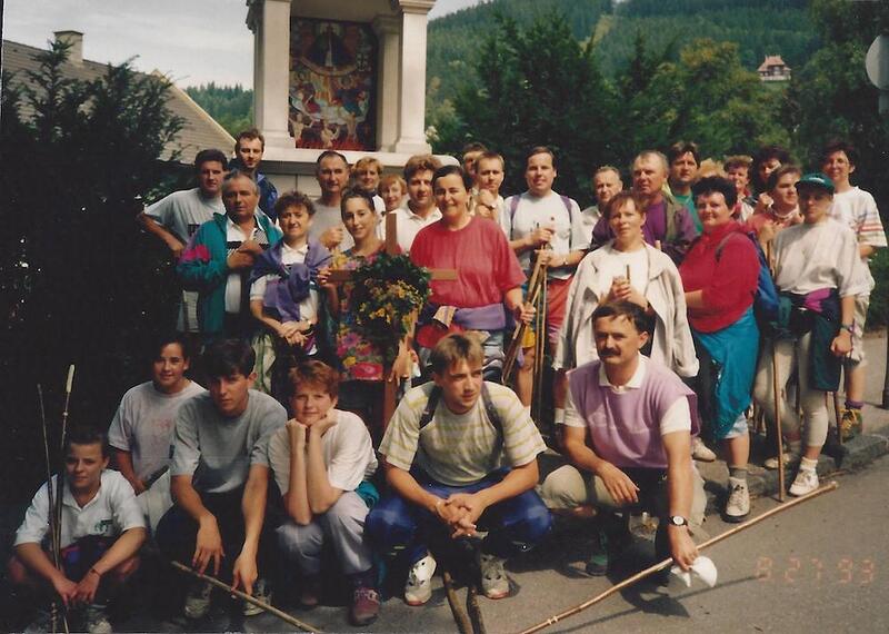 1988. ljeta se je mala grupa mladih ljudi otpravila prvi put piše na put u Celje. Iz Pinkovca je pišački put dost dug, oko 140 kilometrov. Pišačko shodišće zato dura četire do pet dan. Na početku su hodočasniki morali i prenoćevati u sijenu, ar je bilo teško najti kvartir. Dandanas se još rado spomenu ondašnji mladi hodočasniki na to pišačenje. S hodočasniki iz Pinkovca su išli, i koč toč još idu, i vjerniki iz drugih far: na primjer iz Čembe, Bandola, Vincjete, Fratrovoga Sela, Nove Gore i još iz Beča. Neke dobre seoske duše pratu hodočasnike još i do Birkfelda, u Štajerskoj, i je hranu jilom i pilom. Duševna hrana hodočasnikov na putovanju su bile (i su još svenek) molitve, jačke, meditacije, službe riči i koč toč sv. maše. Pred nekoliki ljeti je jedan bravarski majstor iz sela napravio hodočasni križ, koga su postavili neki hodočasniki na Stanglalmu.