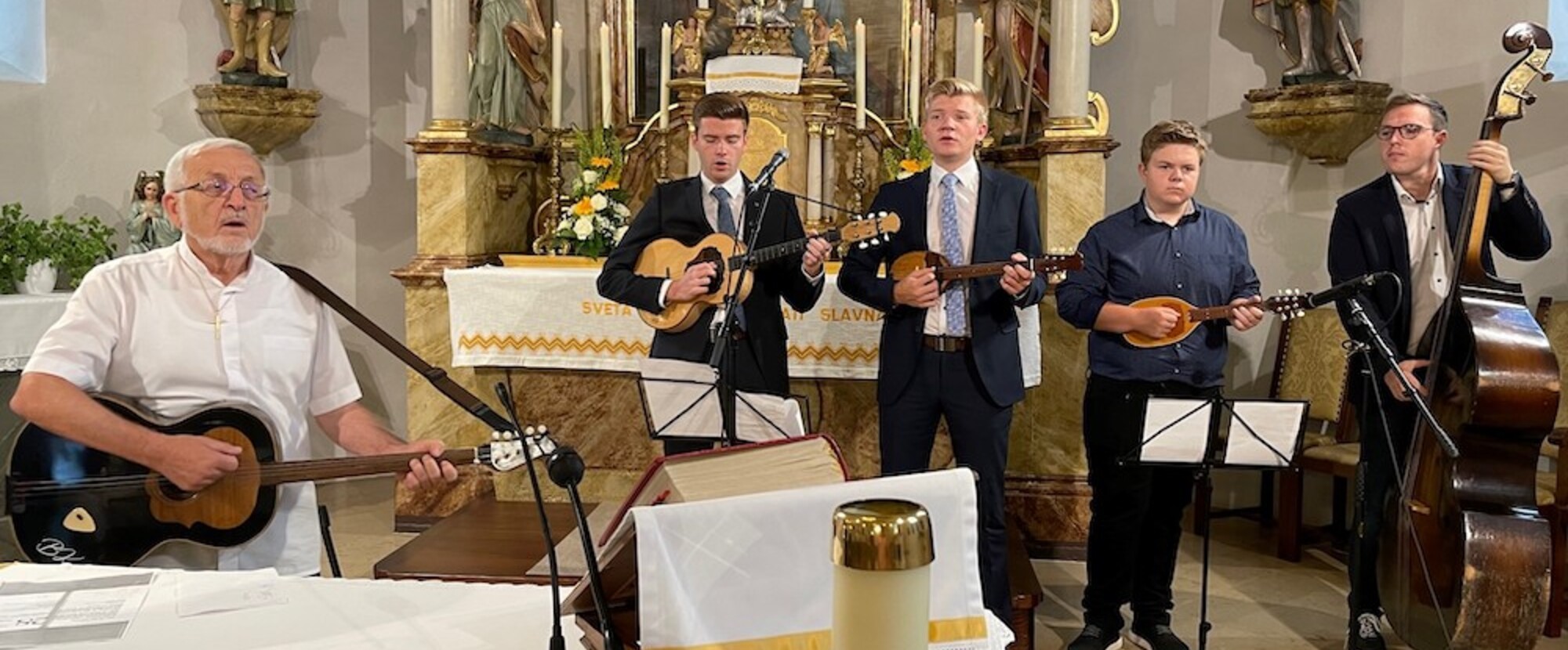 A nedilju, 30. julija služio je farnik svetačnu sv. mašu u farskoj crikvi. Pri svi tri sv. maša razložio i tumačio nam je važnu ulogu sv. Ane za sve majke a osebujno za sve obiteljske staliže. Muzikalno pratili su farnika pri svi tri sv. maša s velikim uspjehom njegovi vjerni “Tamburaši Martin, Michael i &.”. Osebujno presenećen bio je farnik, kada je petak morao zbog čemernoga vrimena prekinuti sv. mašu i prosio sve vjernike na daljnje svečevanje u crikvi i kako disciplirano su mu prošnju uslišili. Dao sam farniku slijedeći odgovor: “Dobroga pastira naslijedi njegova črijeda uvijek rado!” Hvala svim pomagačem i suradnikom pri svi priredba.