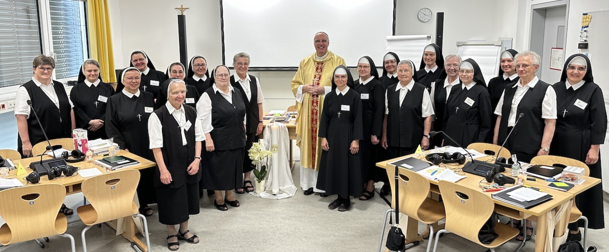 Generalni vikar kan. mmag. Michael Wüger svečevao je završnu svetu mašu sa sestrami i obavio tim povezano svetačno poslanje na službu za drugu periodu. U svojem govoru naglasio je, da pada ova nova perioda djela za kongregaciju u vrime, kada se mnogo svega minja: “Europa se nahadja u boju. Crikva je još pred nekoliki ljeti imala veći porast i drugi oblik.” To potiče na premišljavanje, ali nesmi uzrokovati, da se zgubi hrabrost. Pogled mora biti upravljen najper, “ar jedno si nesmimo dati zeti: nutarnji mir, mir Kristušev”. Nek ov mir drži nanutri one skupa, ki vjeruju u Kristuša.