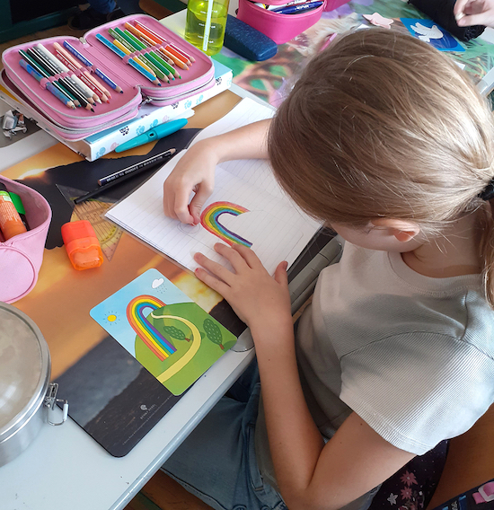 U zadnjem koraku simbol-kartica se prenosi u knjižicu. Neka dica minjaju karticu tako, da im simbolično odgovara. Uzato dodaju rečenicu o svojoj sliki Boga, ka je prethodno razvijena u prezentacijskom razgovoru.