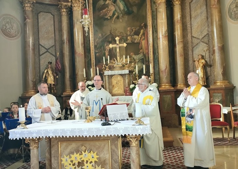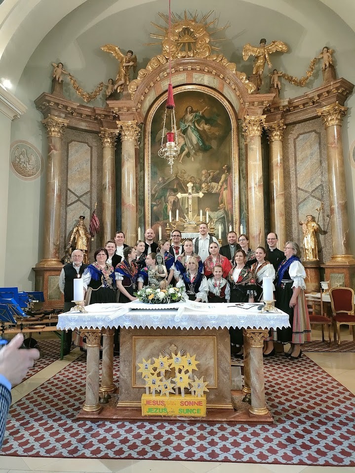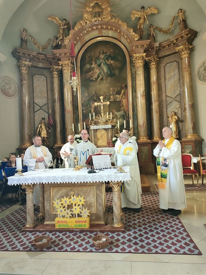 Po lipom uvodu s marijanskimi jačkami i po molitvi i meditacija je slijedila svetačna sveta maša. Glavni celebrant mašnoga slavlja je bio p. Štefan Vukić OMV iz Lovrete a koncelebrirali su hrvatski svećeniki: domaći farnik mag. Branko Kornfeind, mag. Zdravko Gašparić, mag. Marko Zadravec, dijakoni mag. Mihael Marlović i mag. Štefan Tkauz.