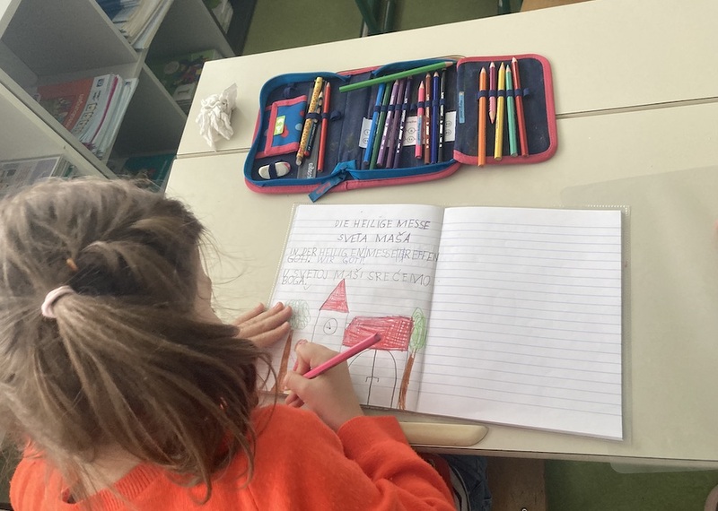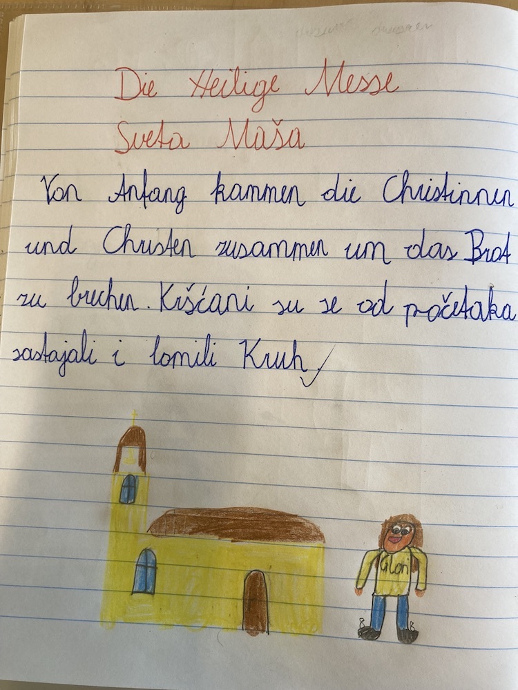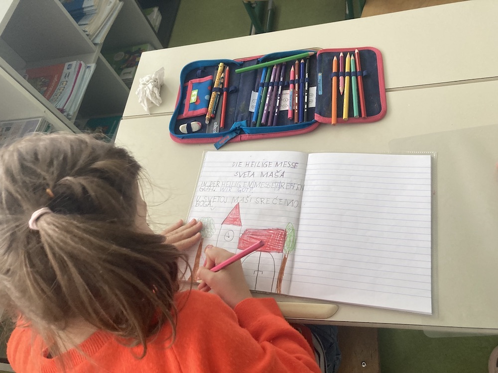 Na koncu je svaki od učenikov u svoju knjižicu pod napisanim tekstom nacrtao oltar s kruhom i kaležom.