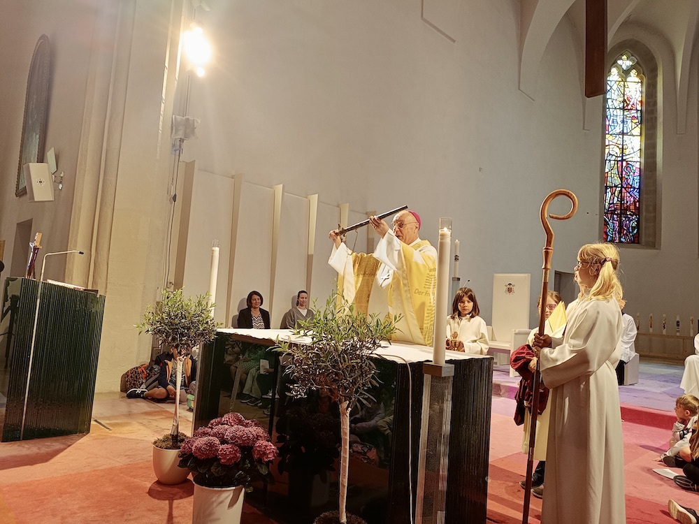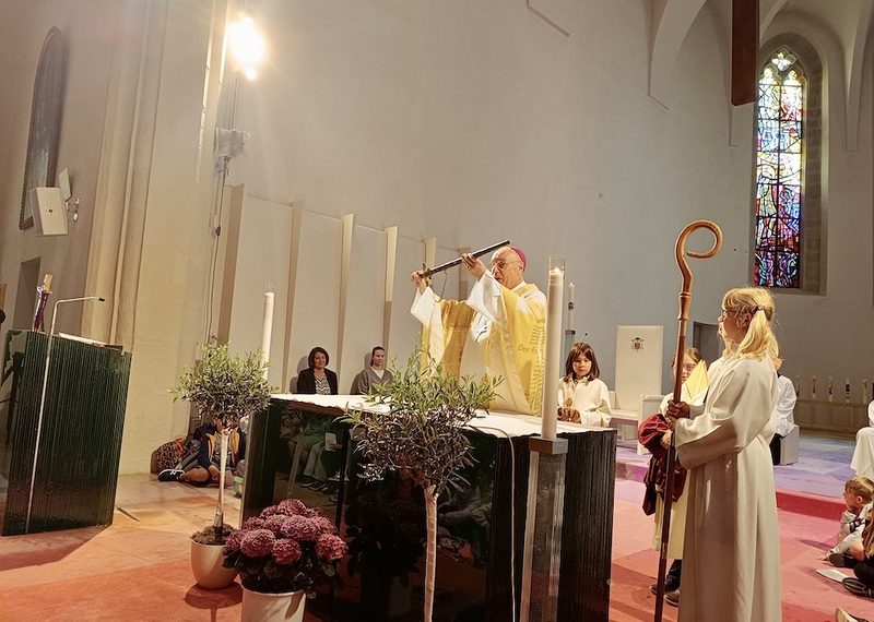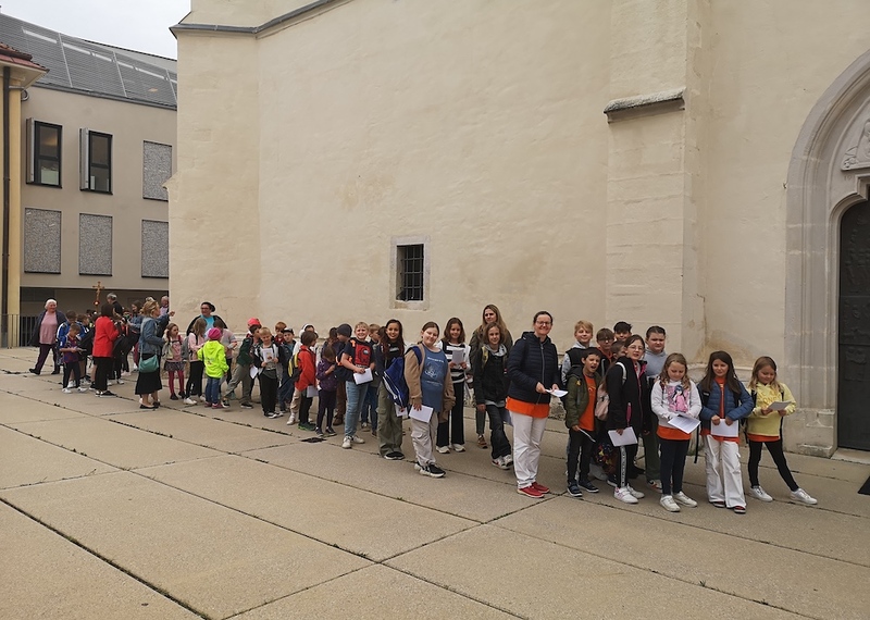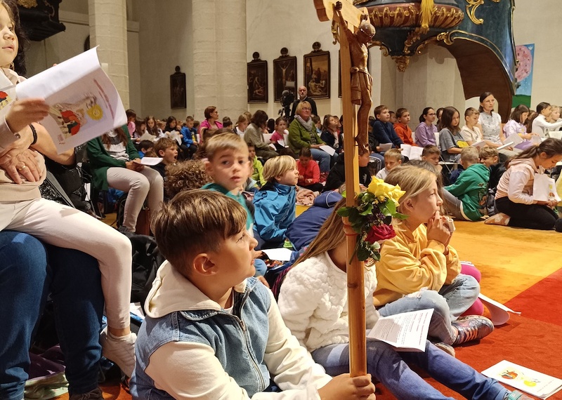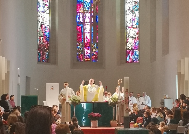 Mi, osnovna škola Kalištrof i Bajngrob smo bili diozematelji na ovom ugodanom shodišću. Putovali smo s busom u Željezno. Onde smo se otšetali u katedralu sv. Martina kade smo skupno s biškupom dr. Egidijom Žikovićem i prik 600 nazočne dice i učiteljstva svečevali i oblikovali svetu mašu.