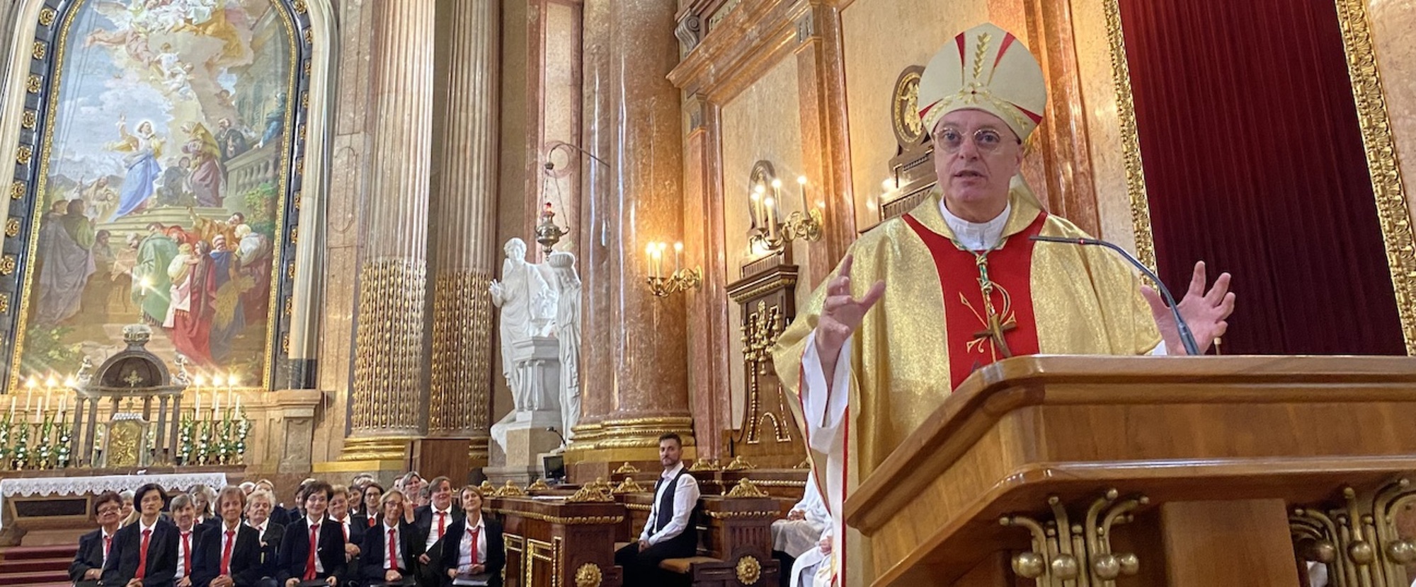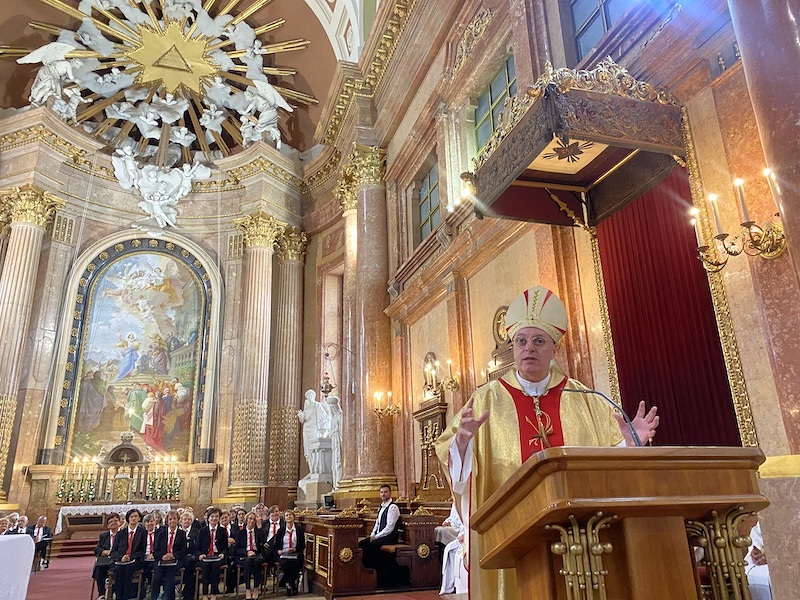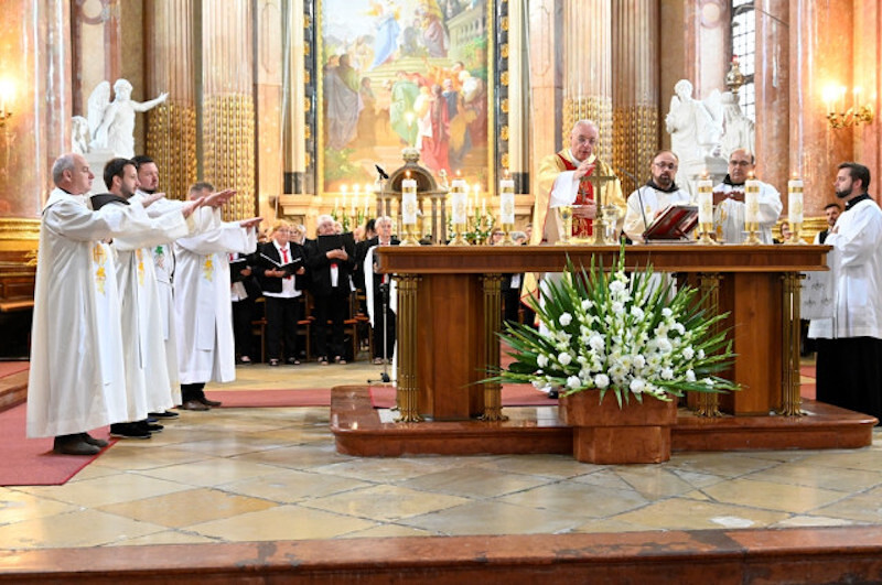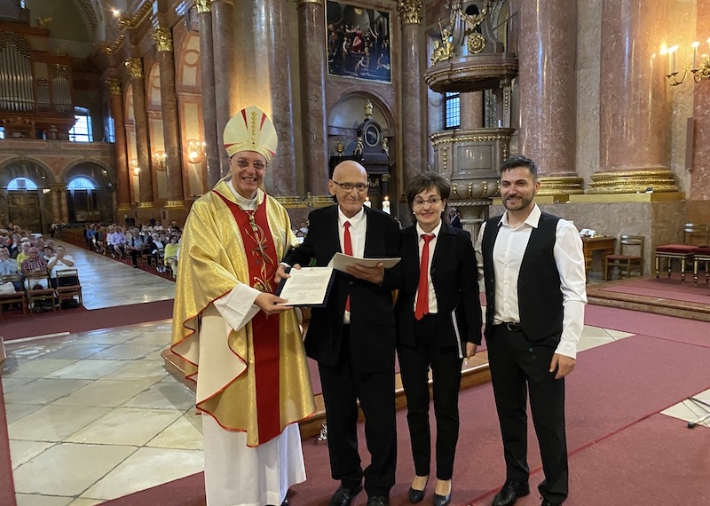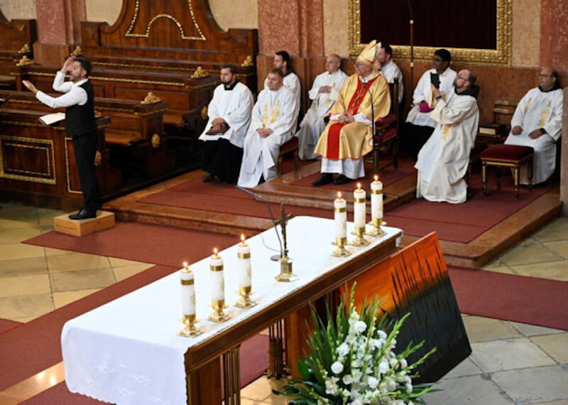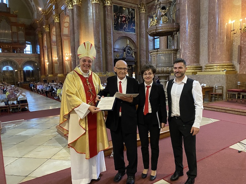 Na početku svete maše je sve pozdravio katedralni farnik ddr. Gyula Pergel. Svetu mašu je muzički oblikovao biškupski zbor Pax et bonum. Po maši je željezanski biškup uručio „SREBERNU medalju“ Željezanske biškupije gospodinu Imreju Harsányi. Gospodin Harsanyi je rodom iz Petrovoga Sela i živi u Kisegu sa svojom ženom Julijom. Imre je od utemeljenja zbora član zbora Pax et bonum. Slavljenik je dobio priznanje za poseban doprinos u očuvanju i podupiranju kršćanske vjere, gradišćansko-hrvatske kulture, glazbe i gradišćansko-hrvatskoga jezika. Željezanski biškup Živković se je zahvalio gospodinu Hrasanyiju za njegov trud, energiju i djelo, ča je on napravio za zbor i za biškupiju.
